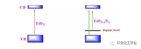 答:非金属掺杂通过在TiO2的禁带中间引入掺杂能级,效缩小TiO2的禁带宽度,使TiO2的激发波长从紫外区拓展到可见光区,提高了可见光的催化活性。